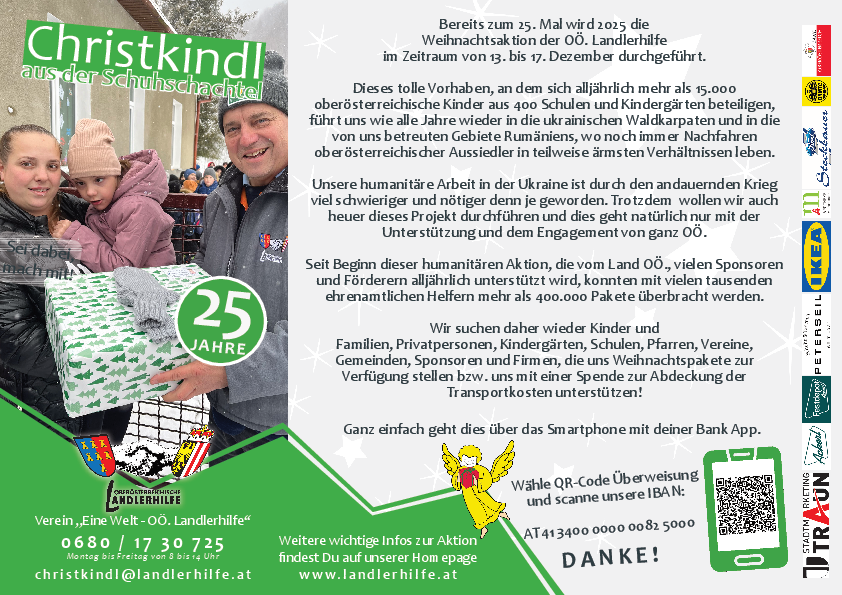 Diese werden dann kurz vor Weihanchten direkt an Kinder in den ukrainischen Waldkarpaten, wo auch heute noch Nachfahren oberösterreichischer Aussiedler leben, verteilt.