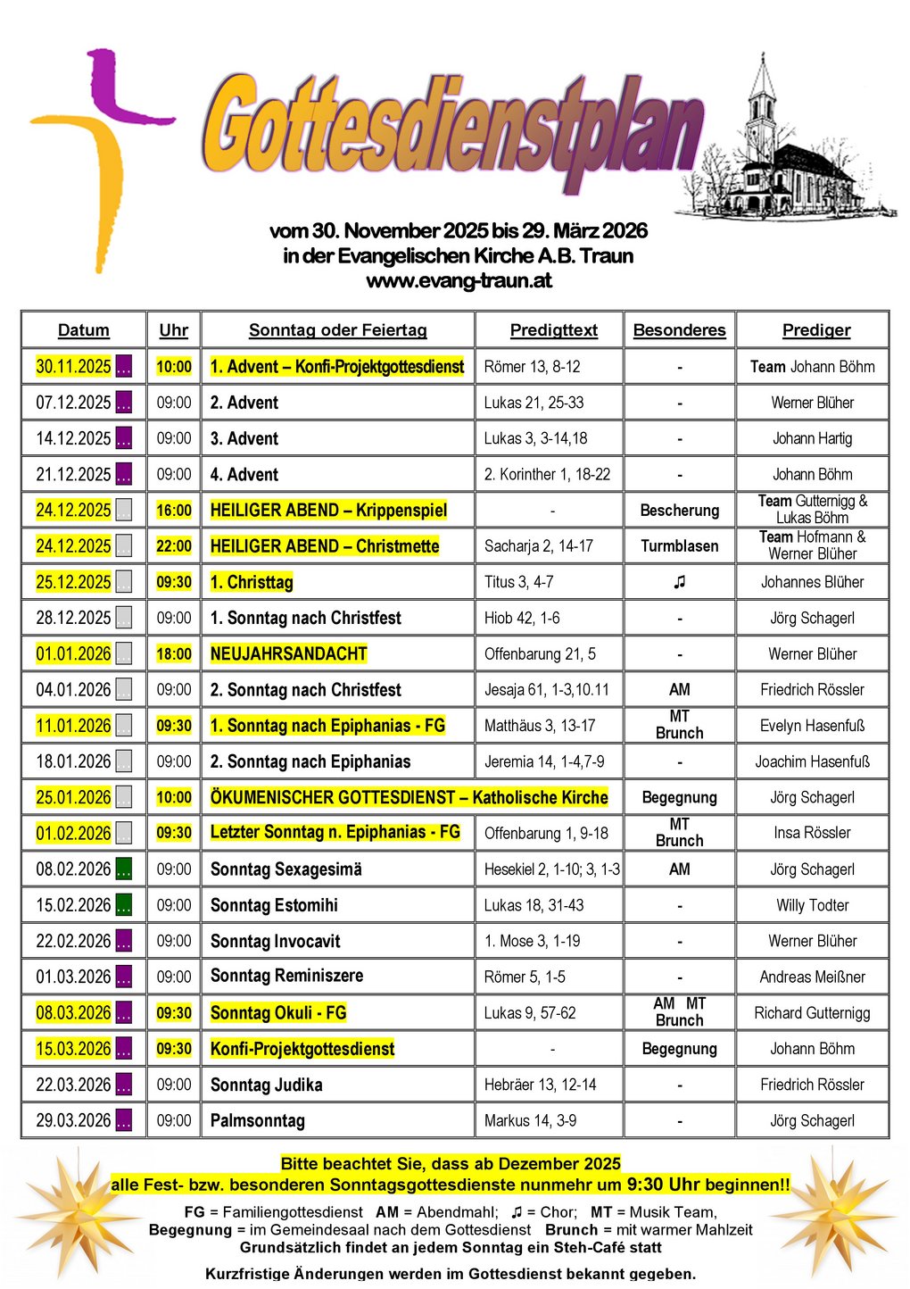 Wir ersuchen um Ihreverbindliche Anmeldungunter der Tel.Nr.: 07229/72 5 81 oder per E-Mail: PG.Traun[at]evang.at oder auf der aufliegenden Liste im Gottesdienst.
